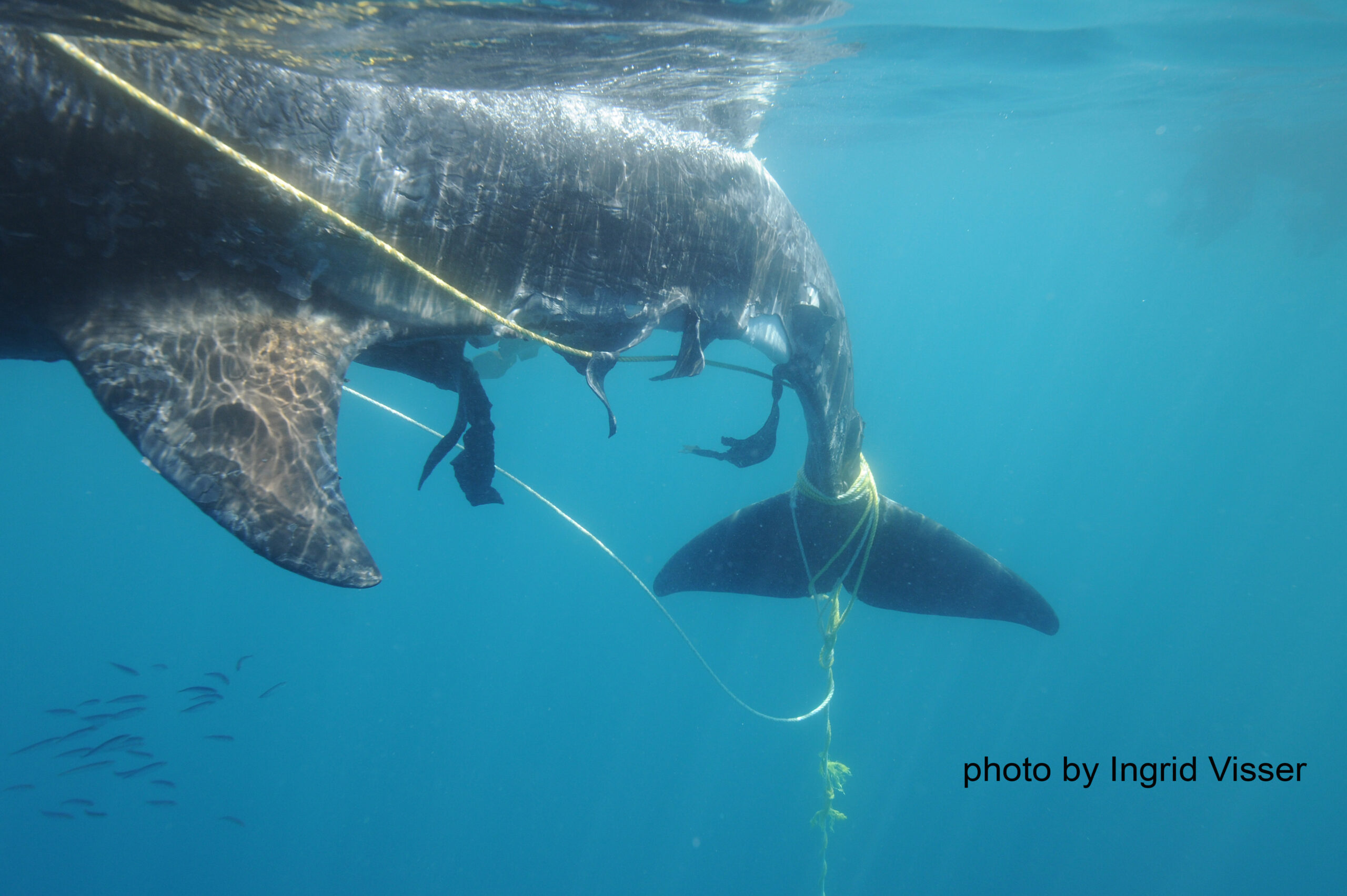Anecdote: This young orca died from being entangled in a crayfish (rock lobster) pot line.  At least 22 orca have been documented as entangled (since 1979) by the Orca Research Trust.