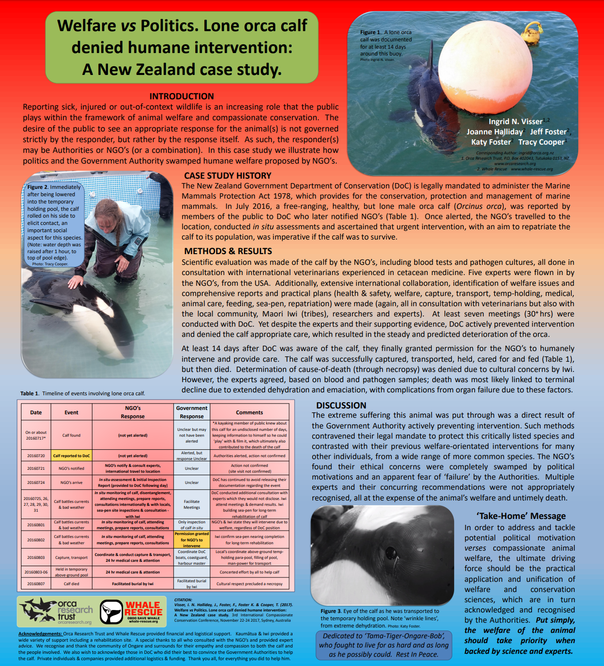 The Orca Research Trust has had a wide range of experience with conducting rescues. Some examples are given in the following conference posters, which can be downloaded as pdfs